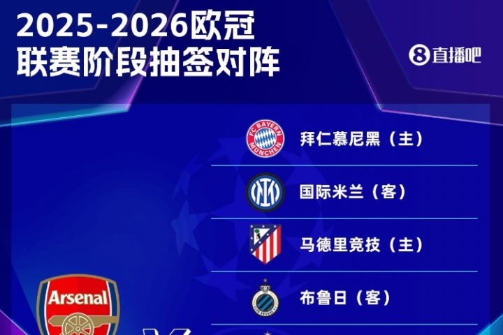 体育资讯08月30日讯 欧足联官方公布欧冠联赛阶段赛程,阿森纳赛程如下。